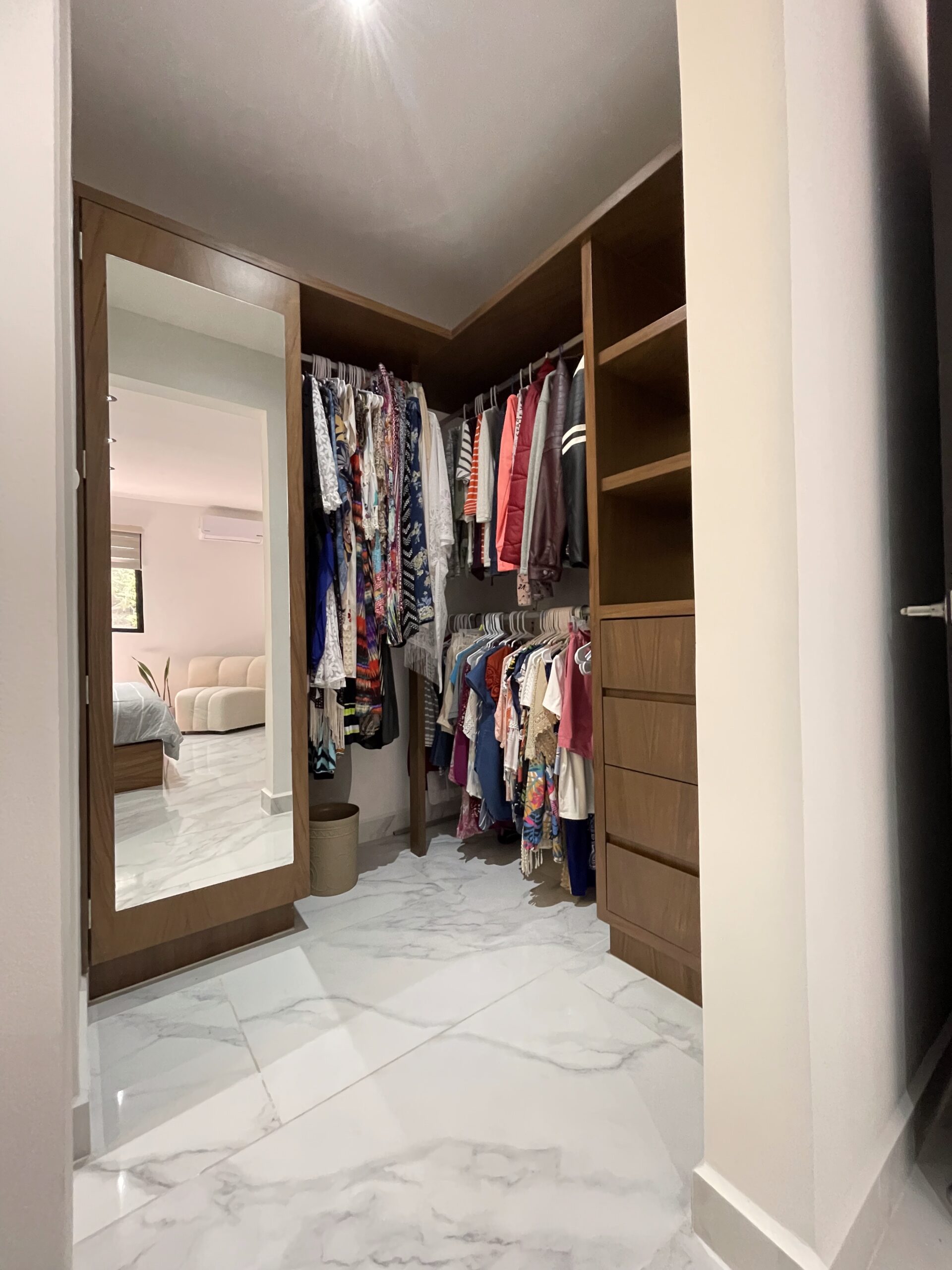 Departamento PDC cuenta con 109 m² de construcción, distribuidos en 3 recámaras, 2 baños completos, sala, comedor, cocina integral y balcón con vista a áreas verdes, y se entrega totalmente equipado y amueblado, listo para habitar. La recámara principal incluye walking closet y baño privado, mientras que las recámaras secundarias cuentan con closets de piso a techo y minisplits inverter. La cocina está equipada con cubierta de mármol, backsplash y electrodomésticos inverter, además de cuarto de lavado independiente. El desarrollo ofrece 5 albercas con chapoteadero, palapas con asadores, áreas de camastros, gimnasio, pet park, canchas de pádel, pickleball y fútbol, más de 60 cajones de estacionamiento para visitas, acceso controlado con seguridad 24/7 y excelente conectividad a la playa, comercios, bancos y escuelas, consolidando una opción cómoda y funcional en Playa del Carmen.
